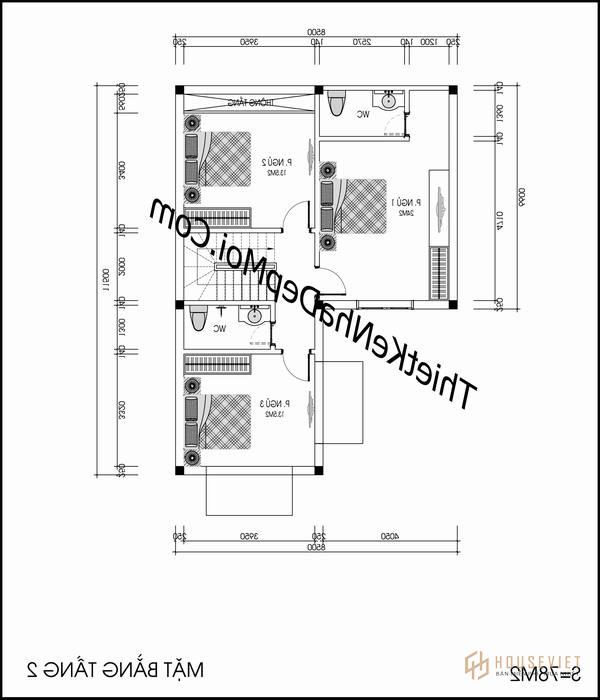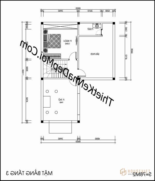 Bản vẽ tầng 3 nhà mái thái đẹp 3 tầng 80m2 ở Hà Đông