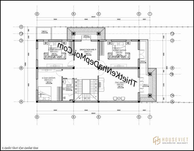 Bản vẽ sàn áp mái nhà vườn 2 tầng mái thái chắc chắn ở ven đô